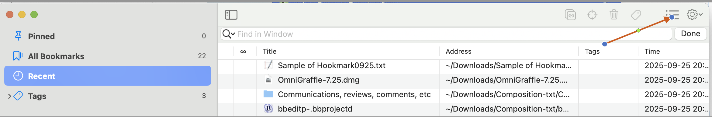If you click on the button at arrow point, it will change to table view. The table view has a Time column.