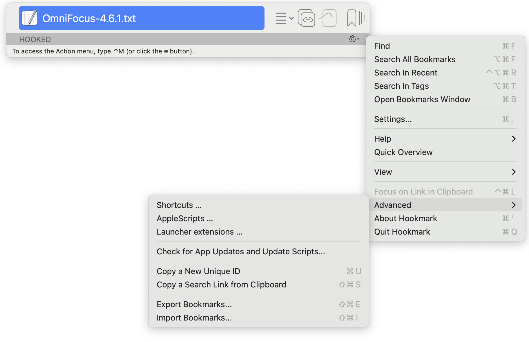 In Hookmark 6, RECENT items section has been moved from the Context window to the new Bookmarks window, along with PINNED and ALL bookmarks.