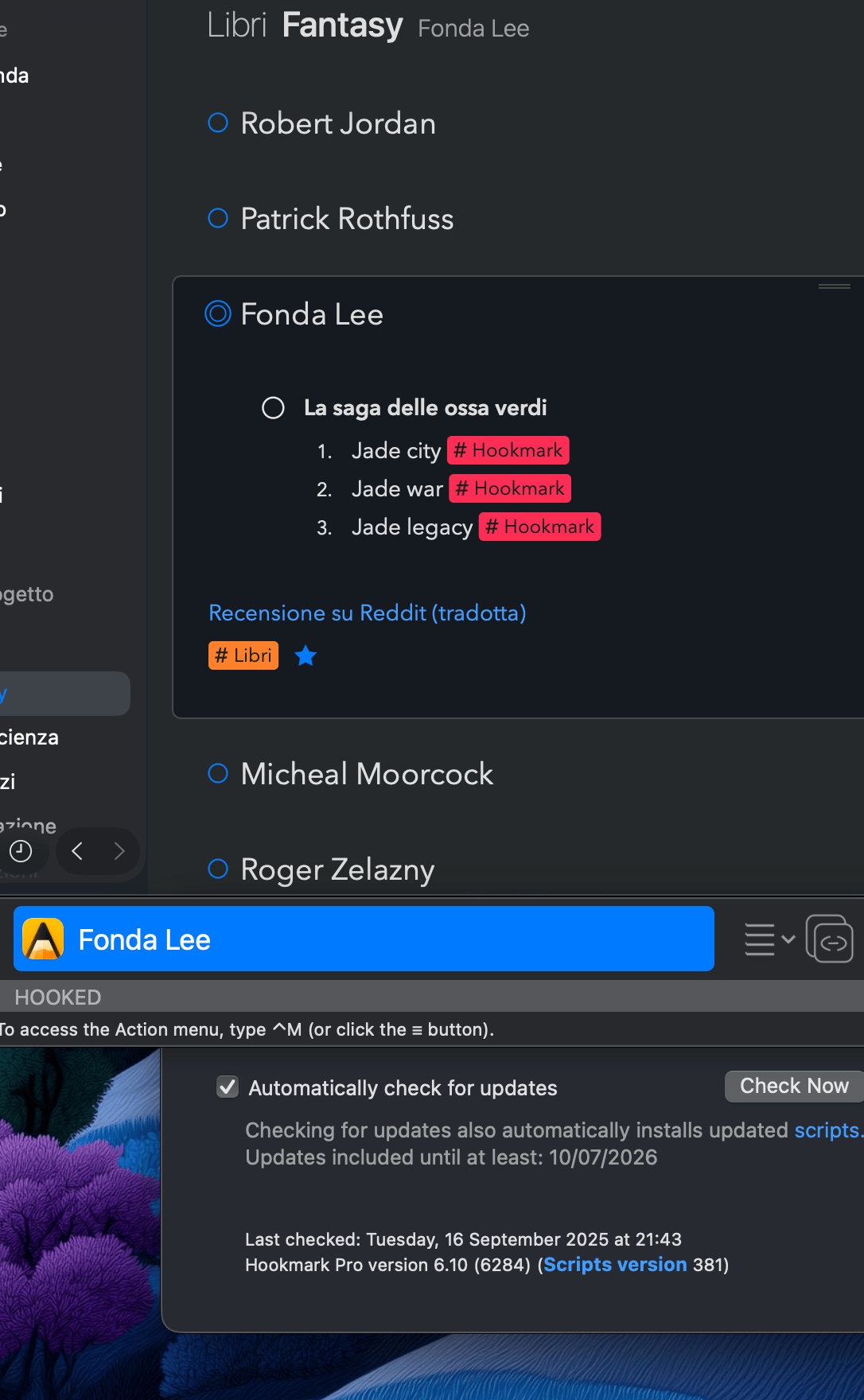 So, the new hook either overwrote the old one or was just ignored as another one (identical) was present. Basically, given the menubar counter is working (will do further testing tomorrow), it seems that Hookmark on Tahoe (and on my Mac) can’t retrieve the hooks I have recorded before the upgrade.