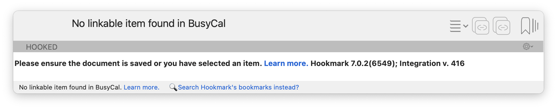 I’m getting this error when I activate Hook on a selected contact in BusyContacts. Is this integration no longer supported? Any suggestions?